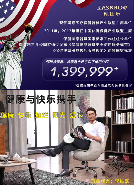 李维嘉主持的快乐大本营一直深受广大观众朋友的喜爱。他正面、阳光和富有活力的形象,在主持领域的口碑和影响力是我们有目共睹的,他对主持事业的执着,专业,正是与“凯仕乐”所秉承的理念相符合的。我们希望与李维嘉先生的合作能推进“凯仕乐”在家庭按摩保健行业的广泛影响力,引发消费者的共鸣。我们希望在未来,能与李维嘉先生携手将“凯仕乐”打造成为消费者心目中具有影响力的家庭标配按摩保健品牌!”