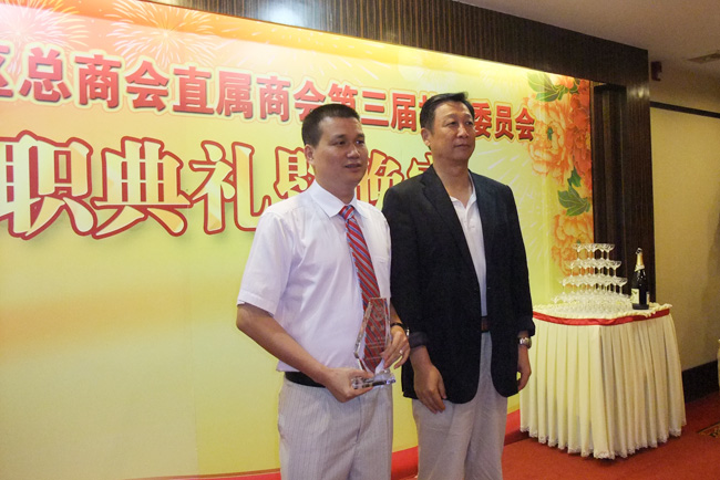 佛山市政协副主席杨军辉为佛山市禅城区工商联(总商会)直属商会会长潘成森颁发证书